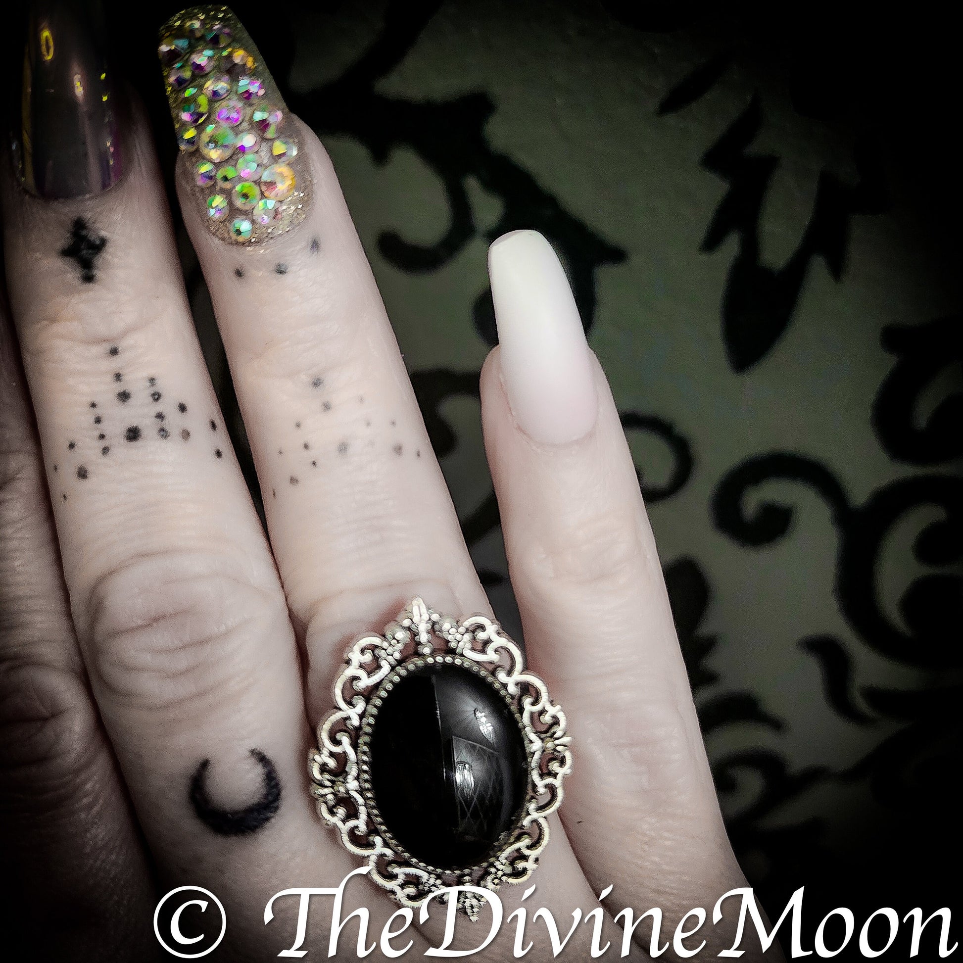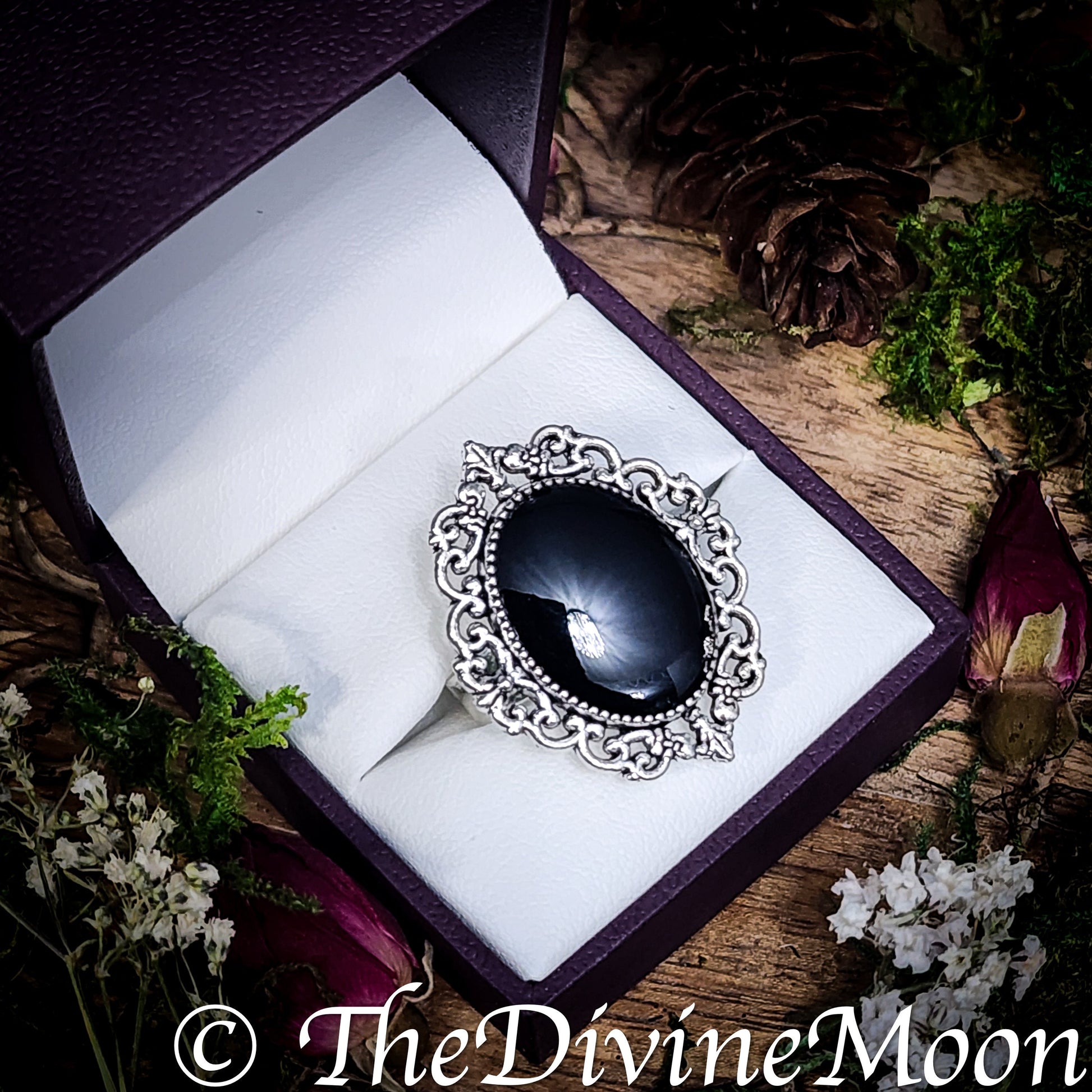 Authentic Scrying Rings handmade for on the go readings. Antique Black Ornate Gothic Round Black Mirror Victorian French Antique Black Vintage Scrying Black Mirror with genuine vintage ring frame for witchcraft and wicca divination. Refinished adjustable rings with handmade insert for black scrying mirror ring. Beautiful piece and one of a kind. Includes "How to scry in a black mirror" letter.