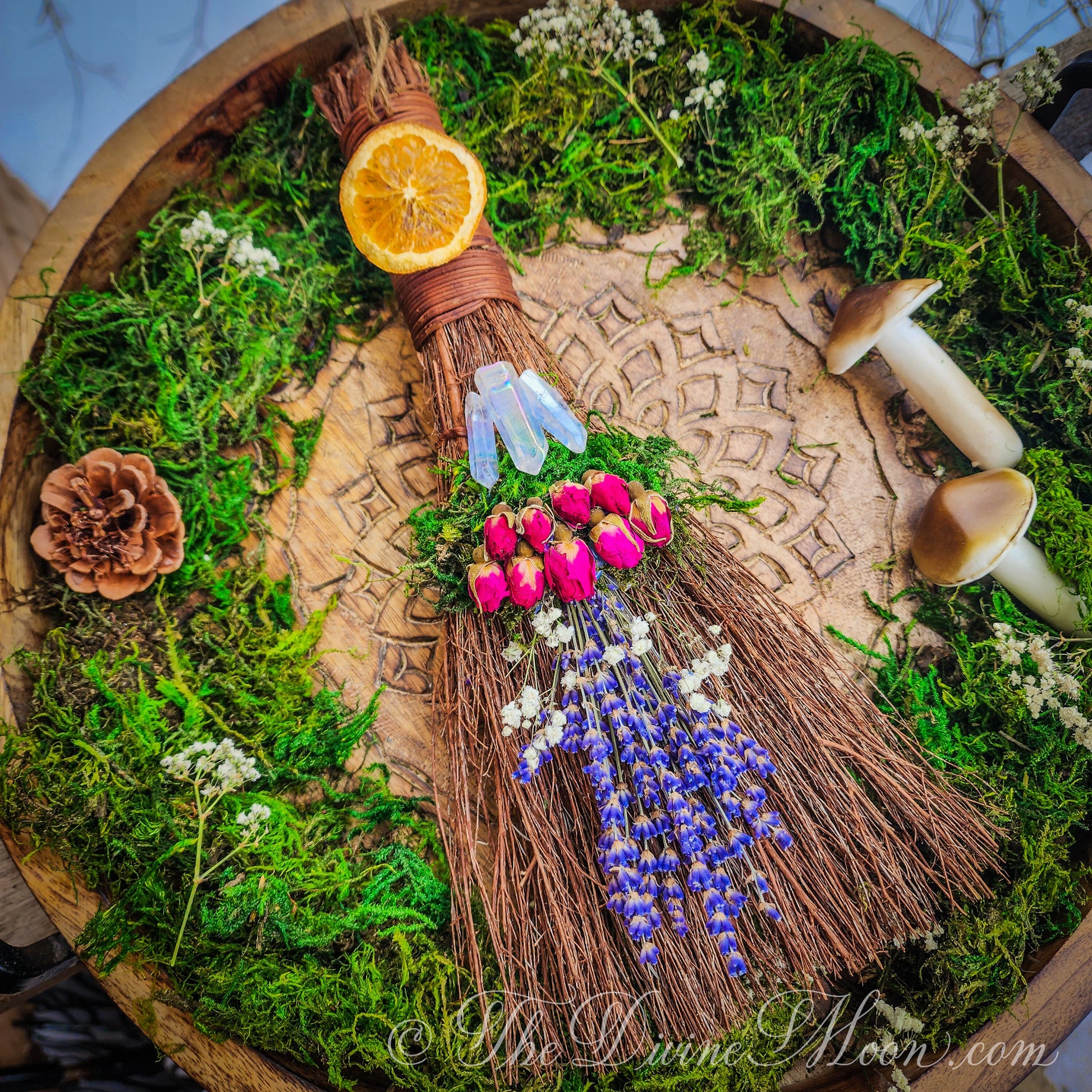 Crystal Altar Orange Cinnamon Witch Broom / Besom, Protection, Warding, Altar Protection, Jump The Broom, Quartz, New Life, Quartz Point