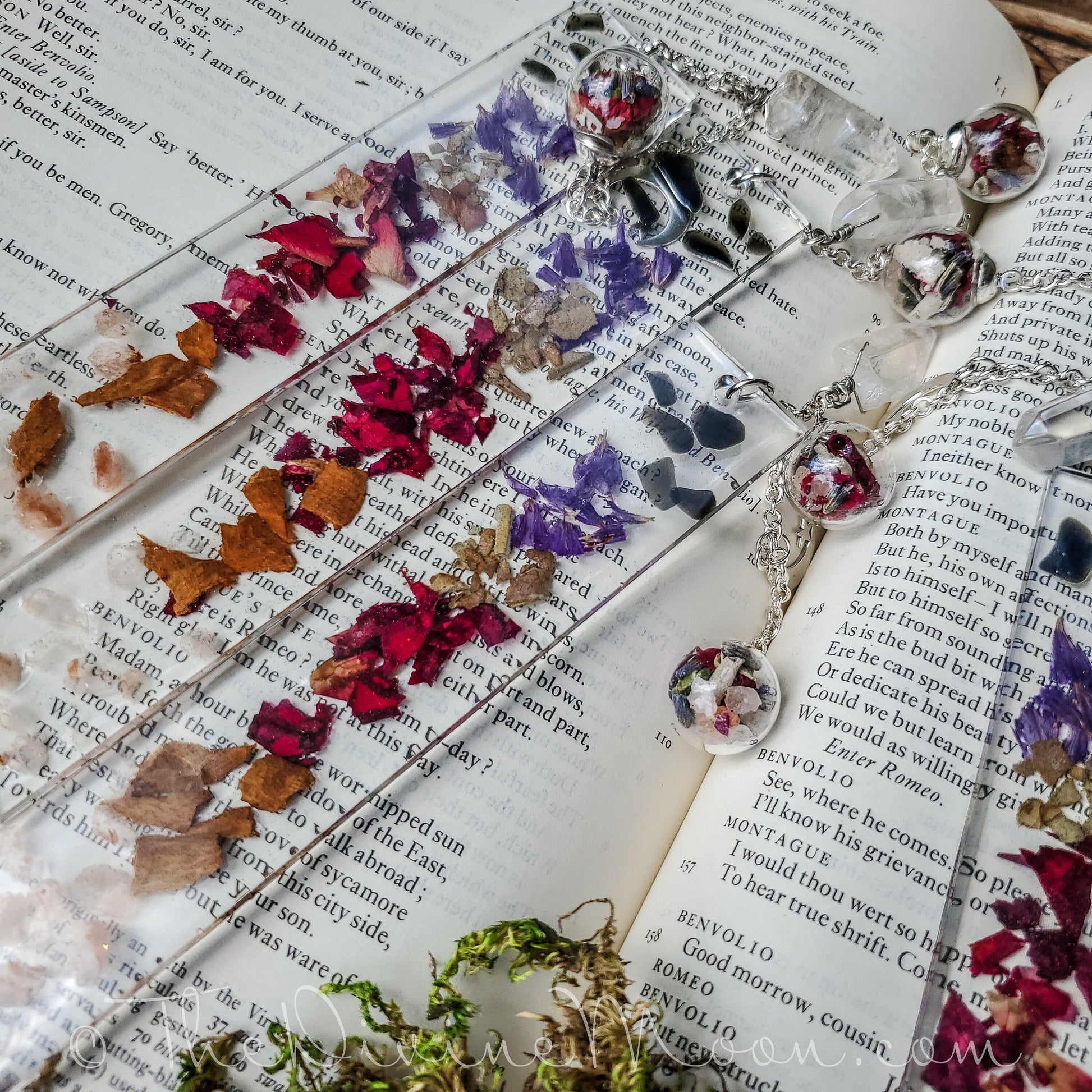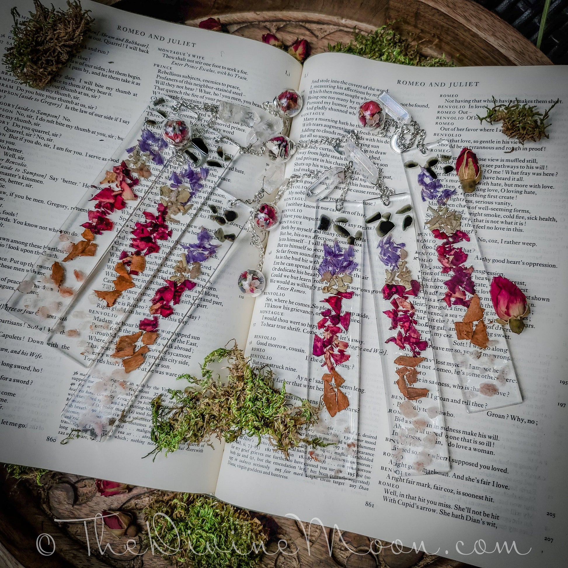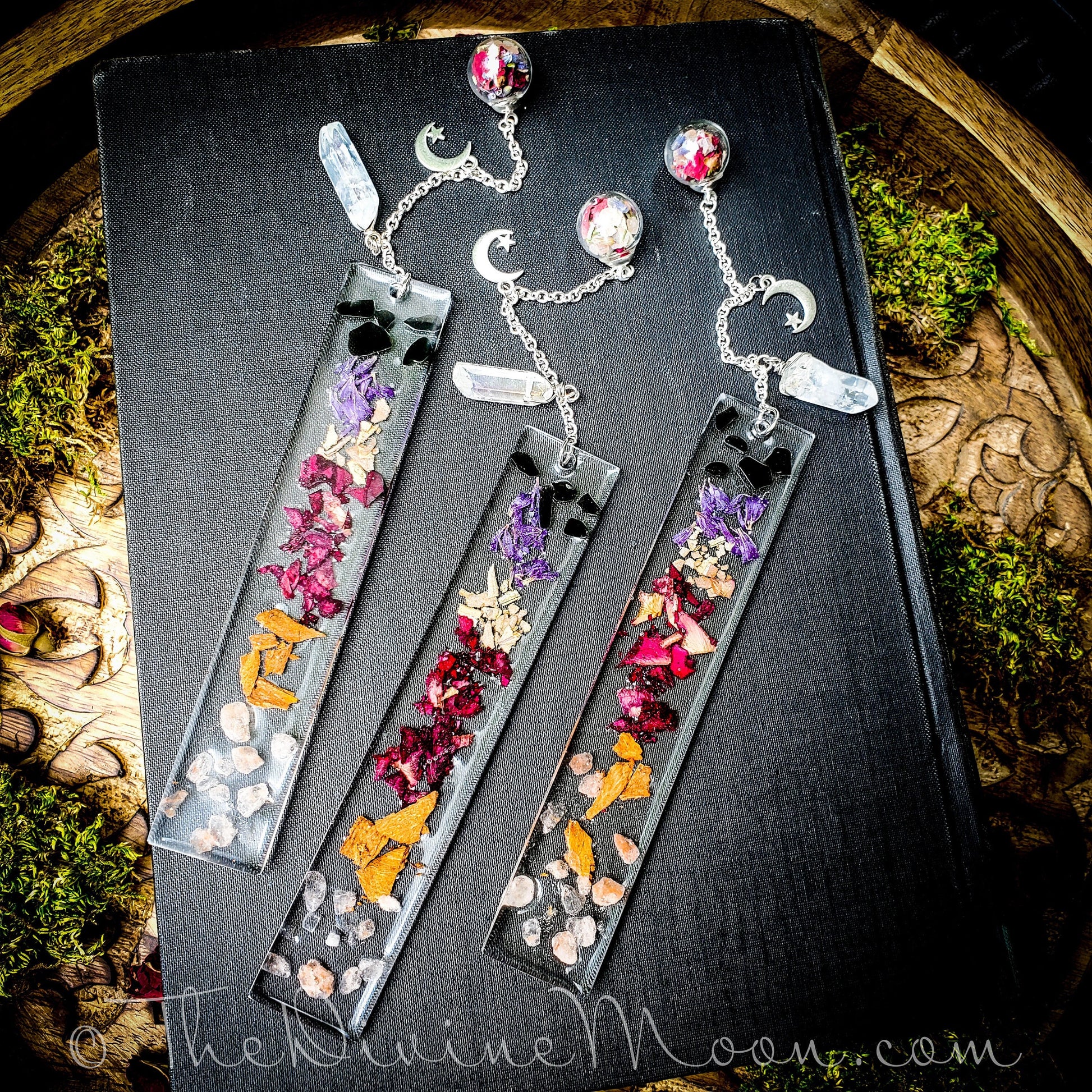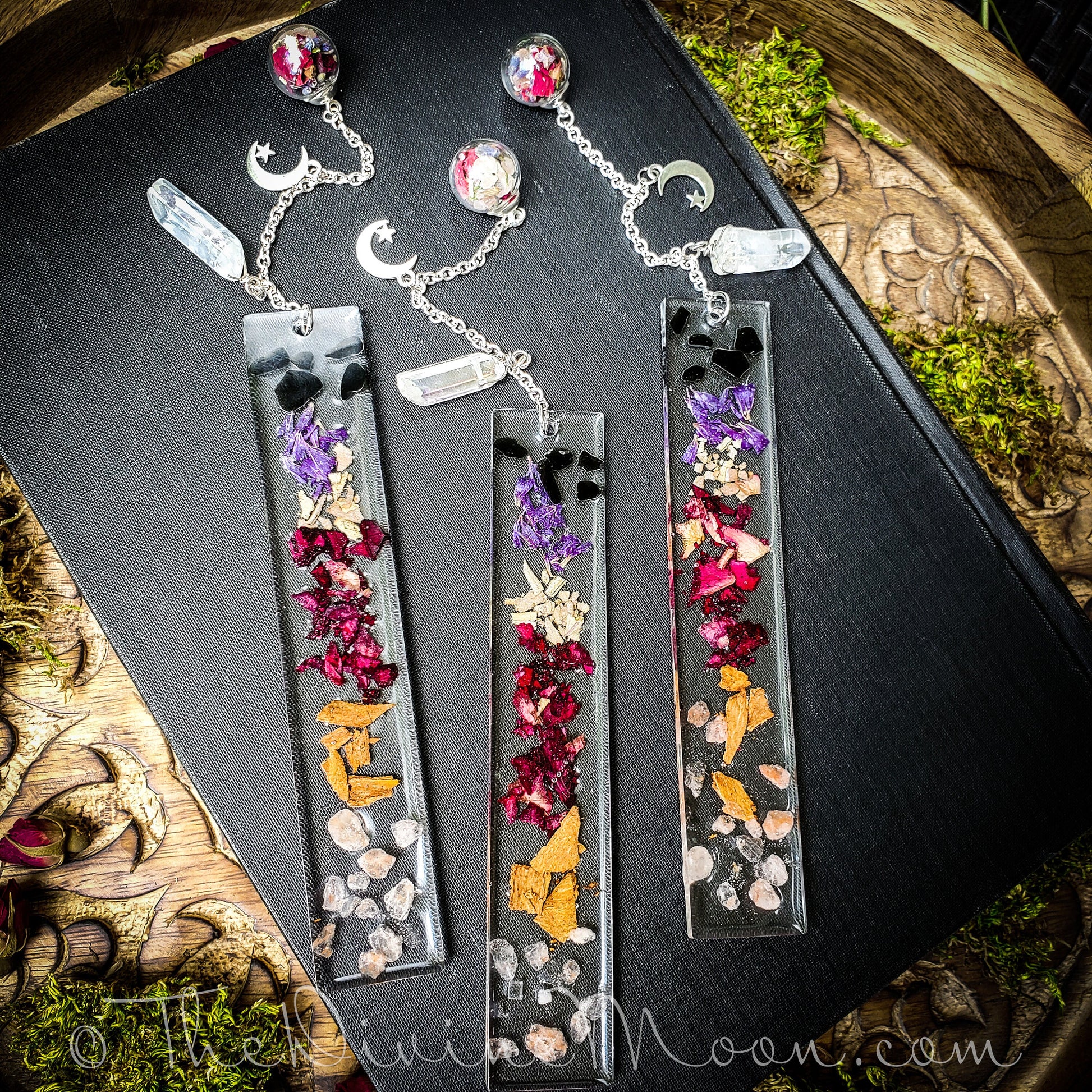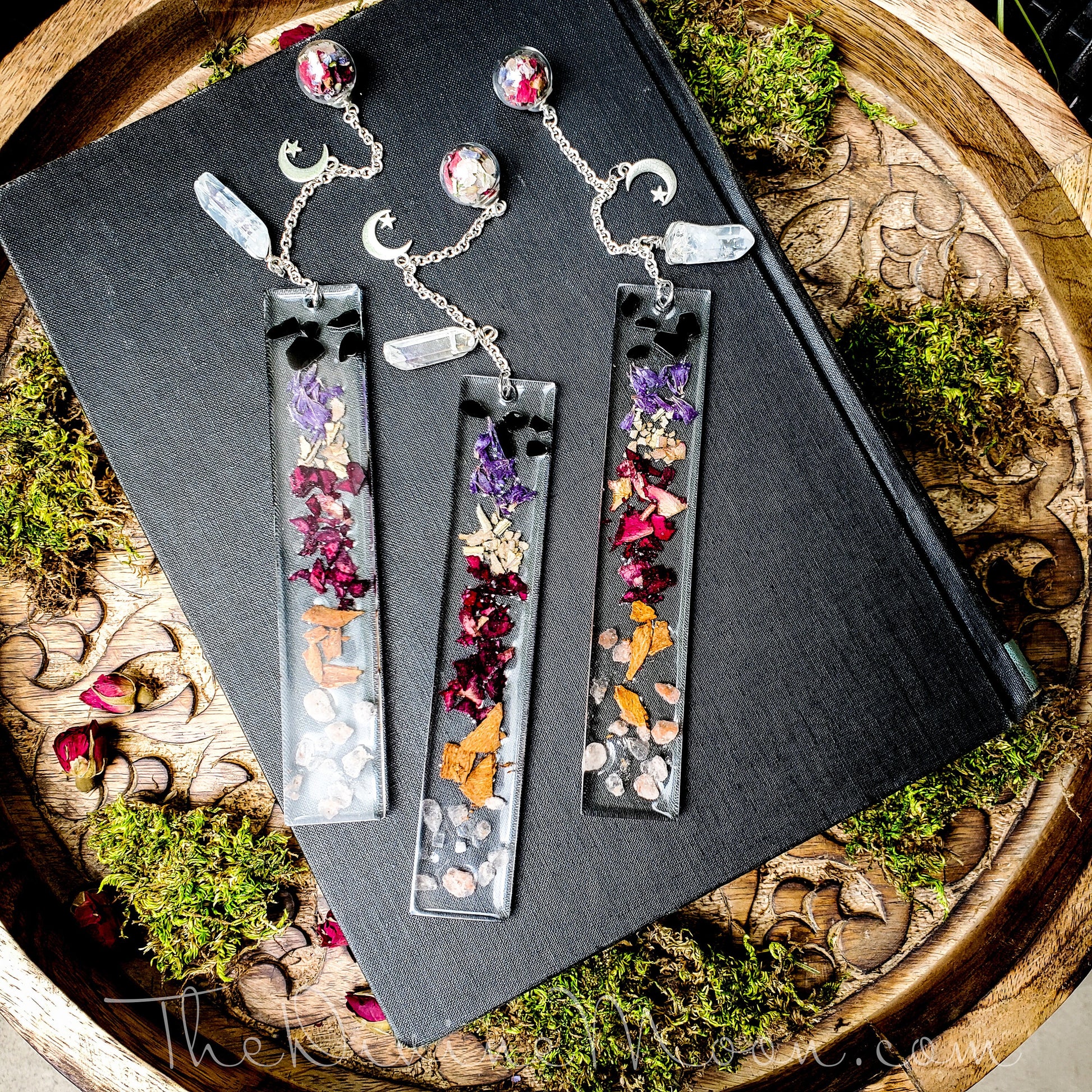 Spell bookmark Ingredients: Dry Rose pedals Sage Pink Himalayan Rock Salt Obsidian Crystals Lavender Cinnamon Sticks Large Quartz Point: In the metaphysical world, Clear Quartz crystals are the supreme gift of Mother Earth. Even the smallest is imbued with the properties of a master teacher.