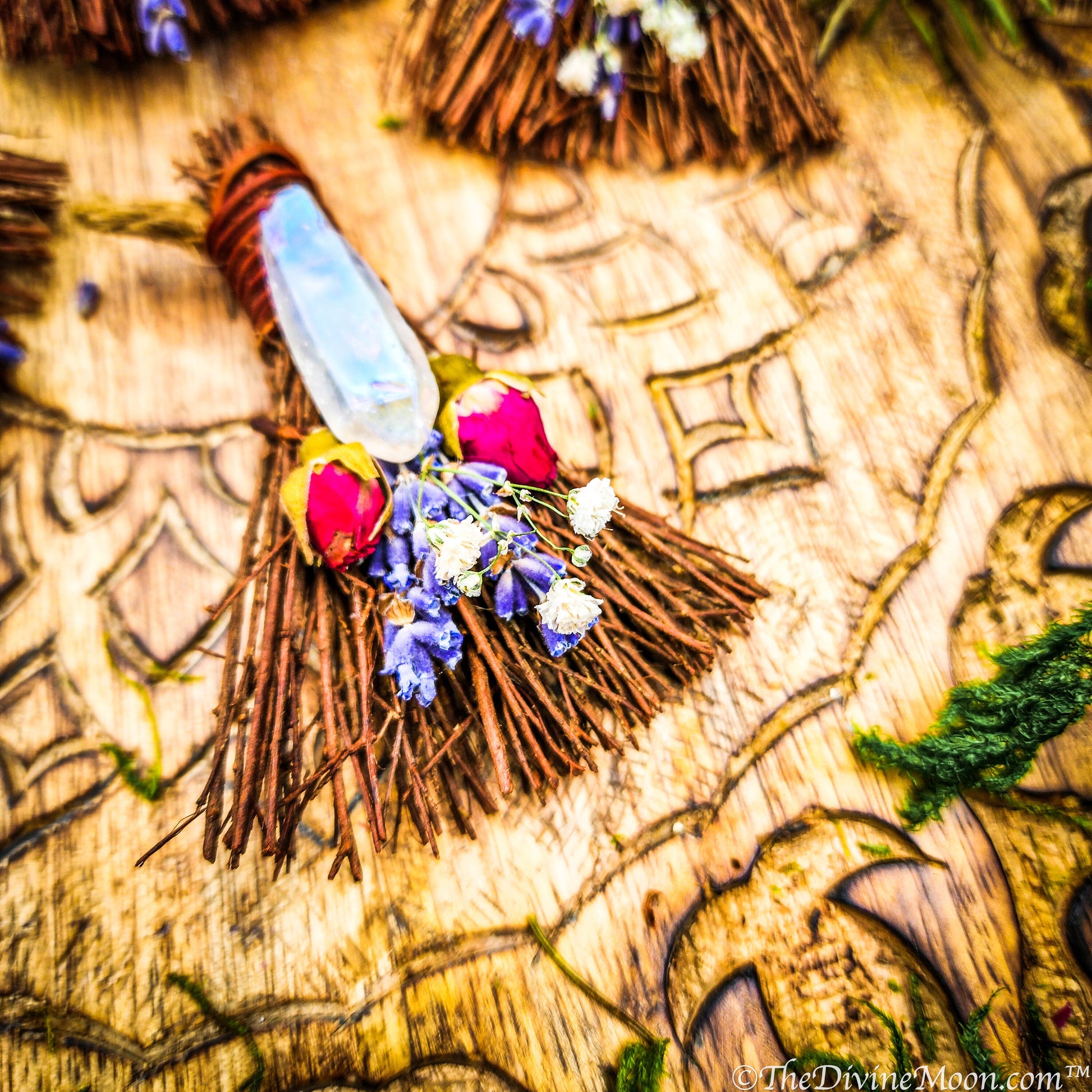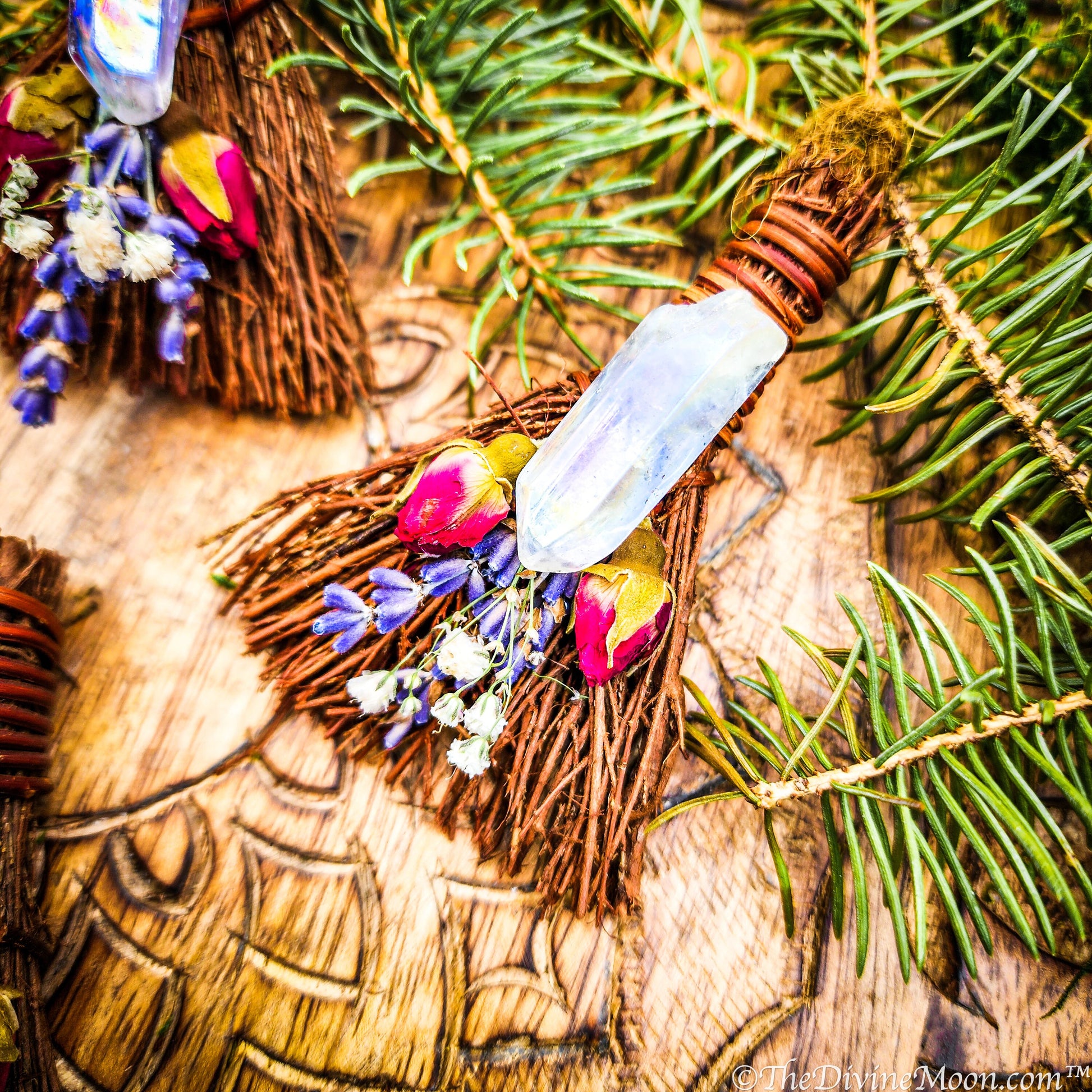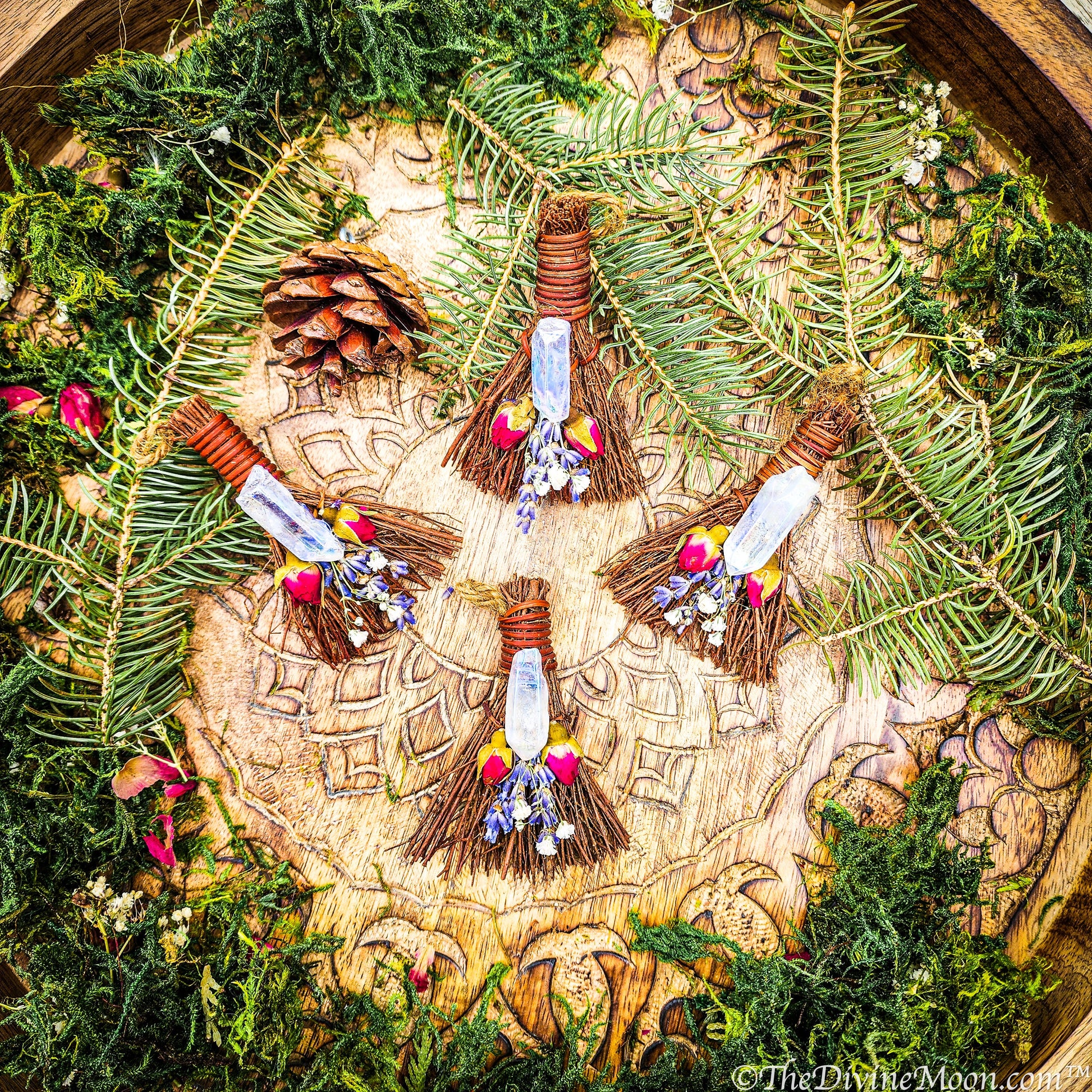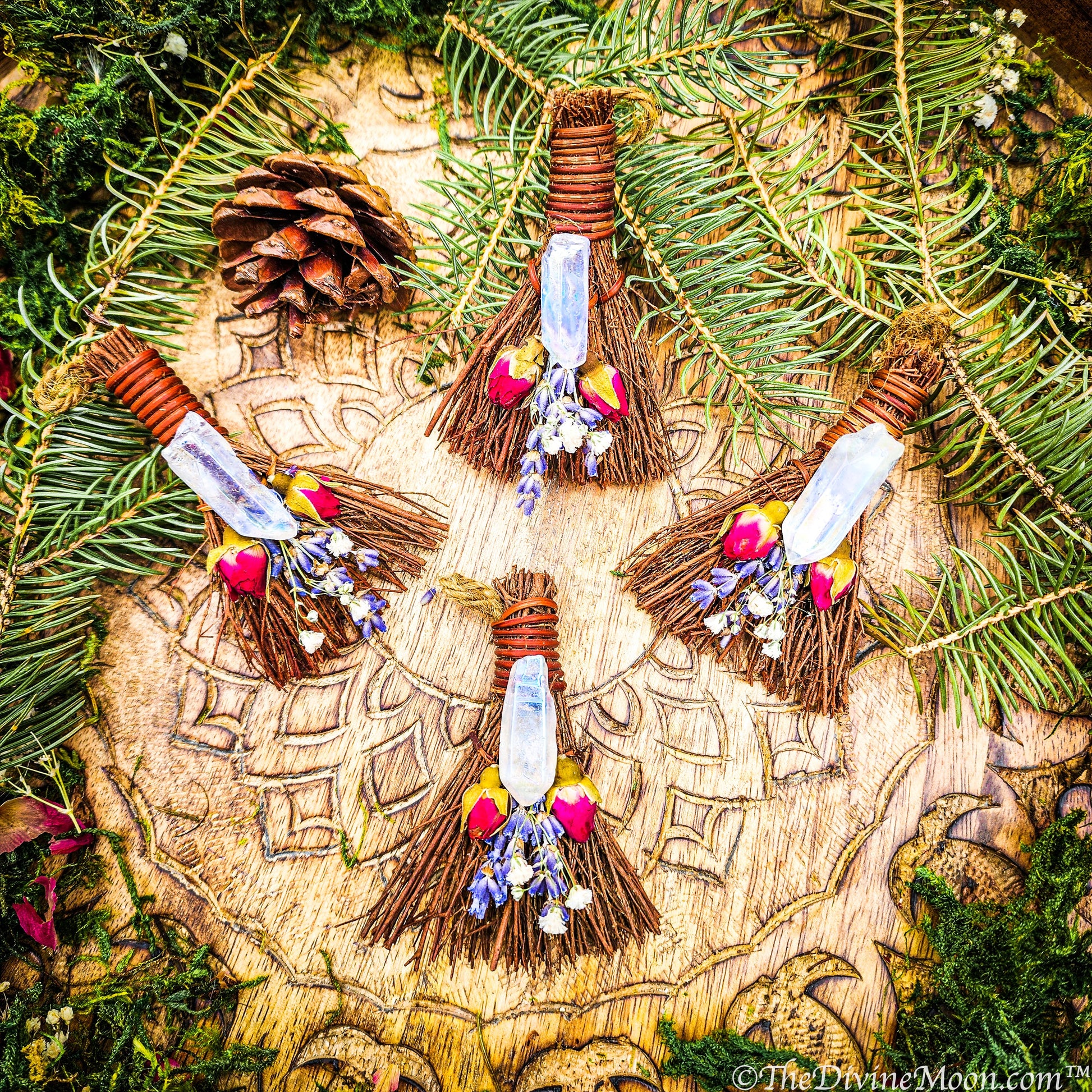 Floral Crystal Ornament, Mini Broom for Altar, Witch Broom / Besom, Protection, Warding, Altar Protection, Jump The Broom, Quartz Point