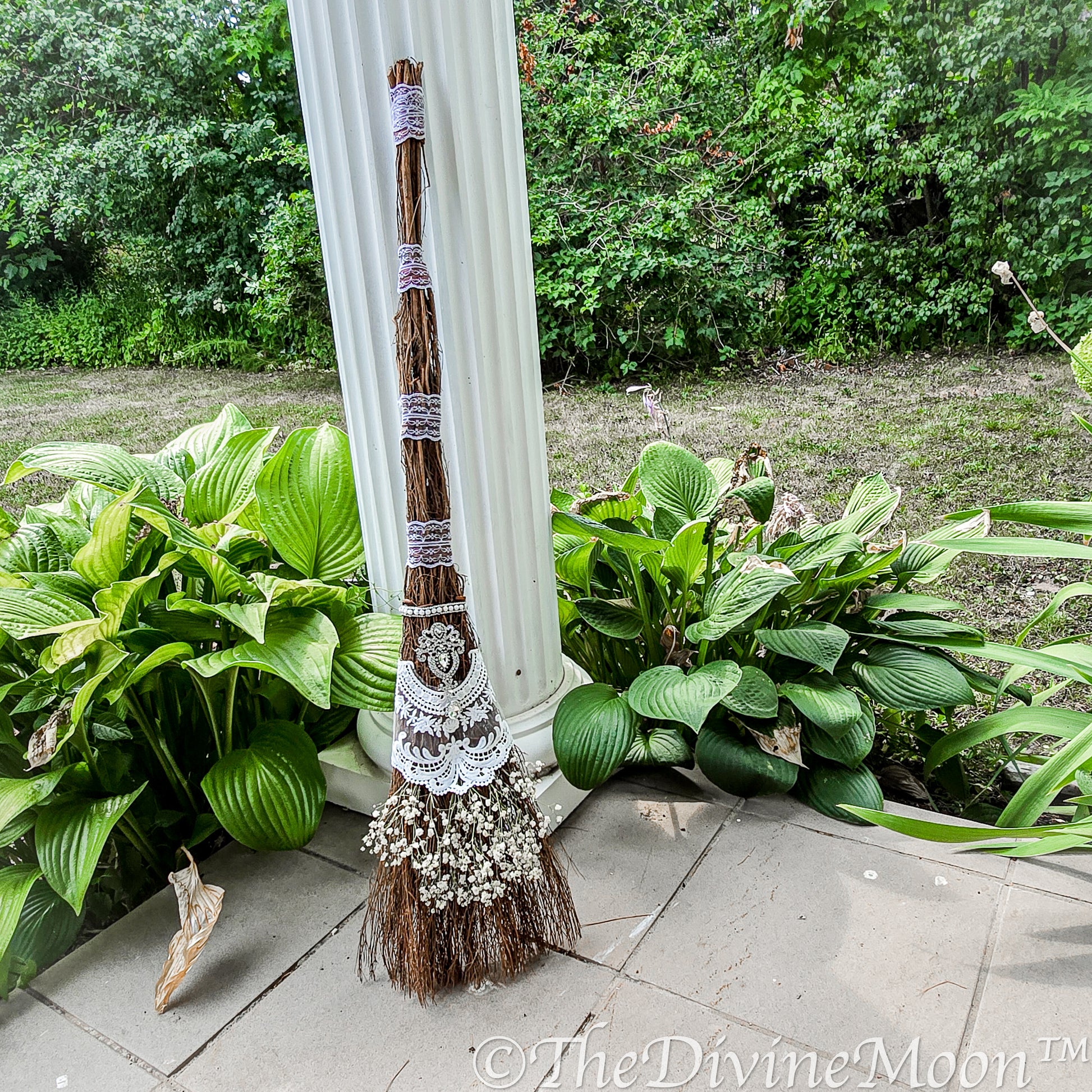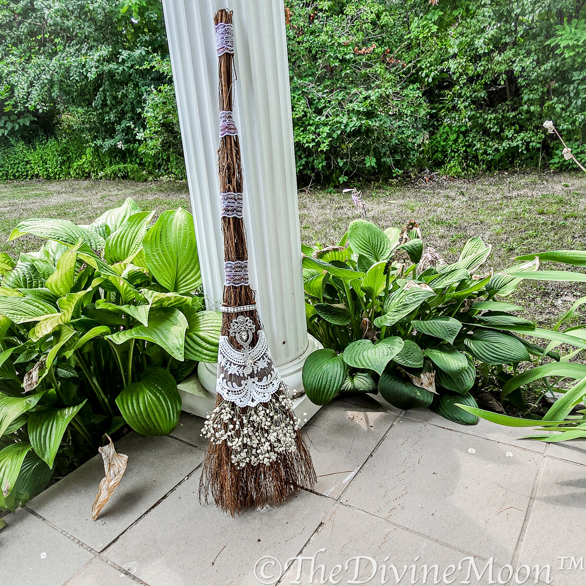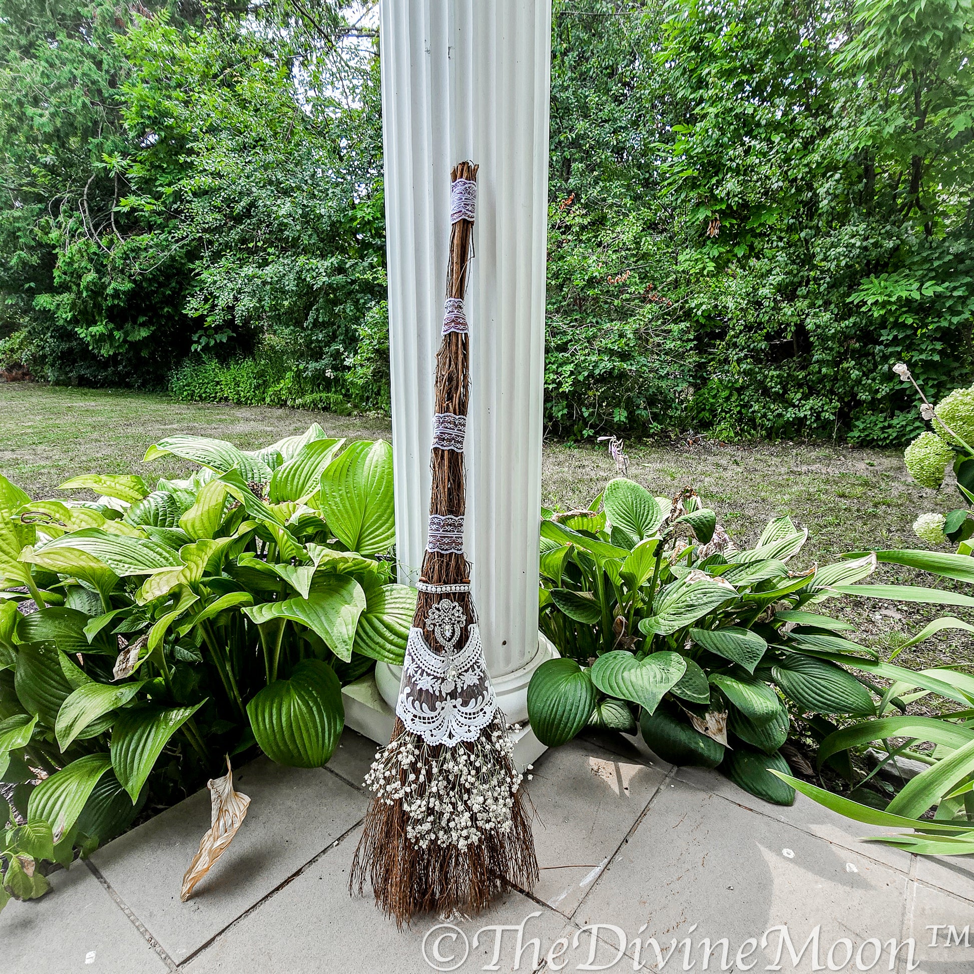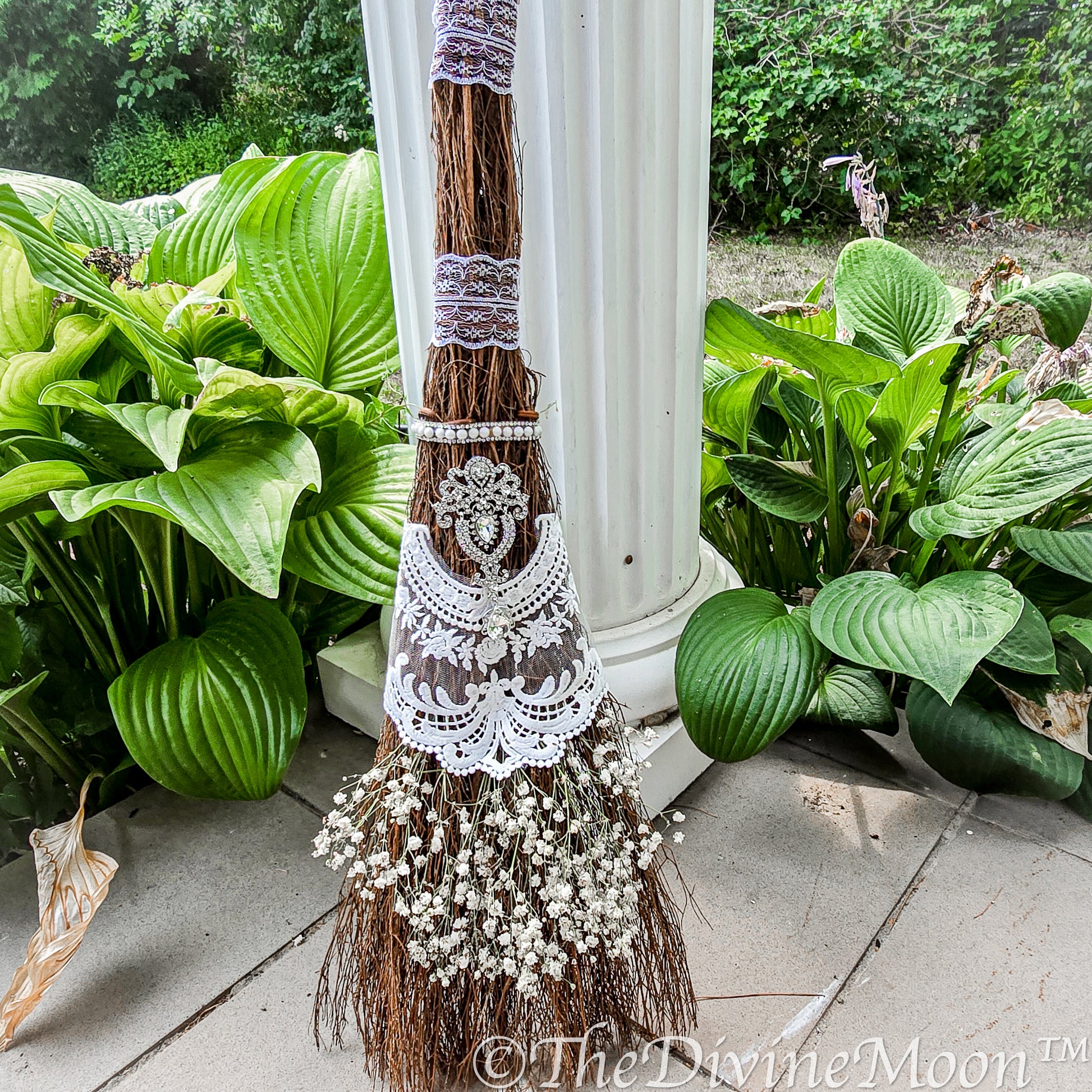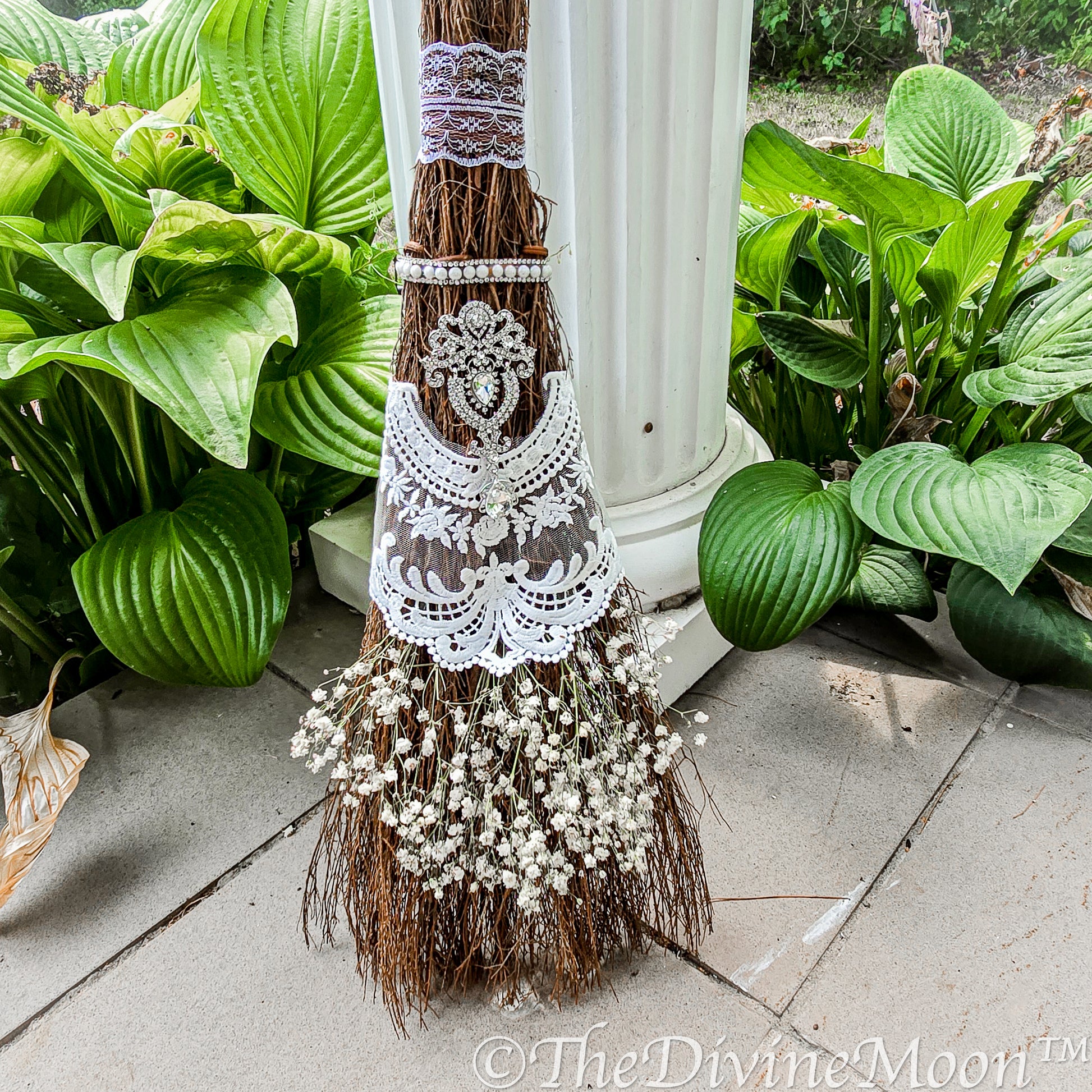 Love Wedding Broom, Jump the Broom, Life Size Crystal Altar Witch Broom / Besom, White Lace, Everlasting Love, Altar Protection, Rhinestones