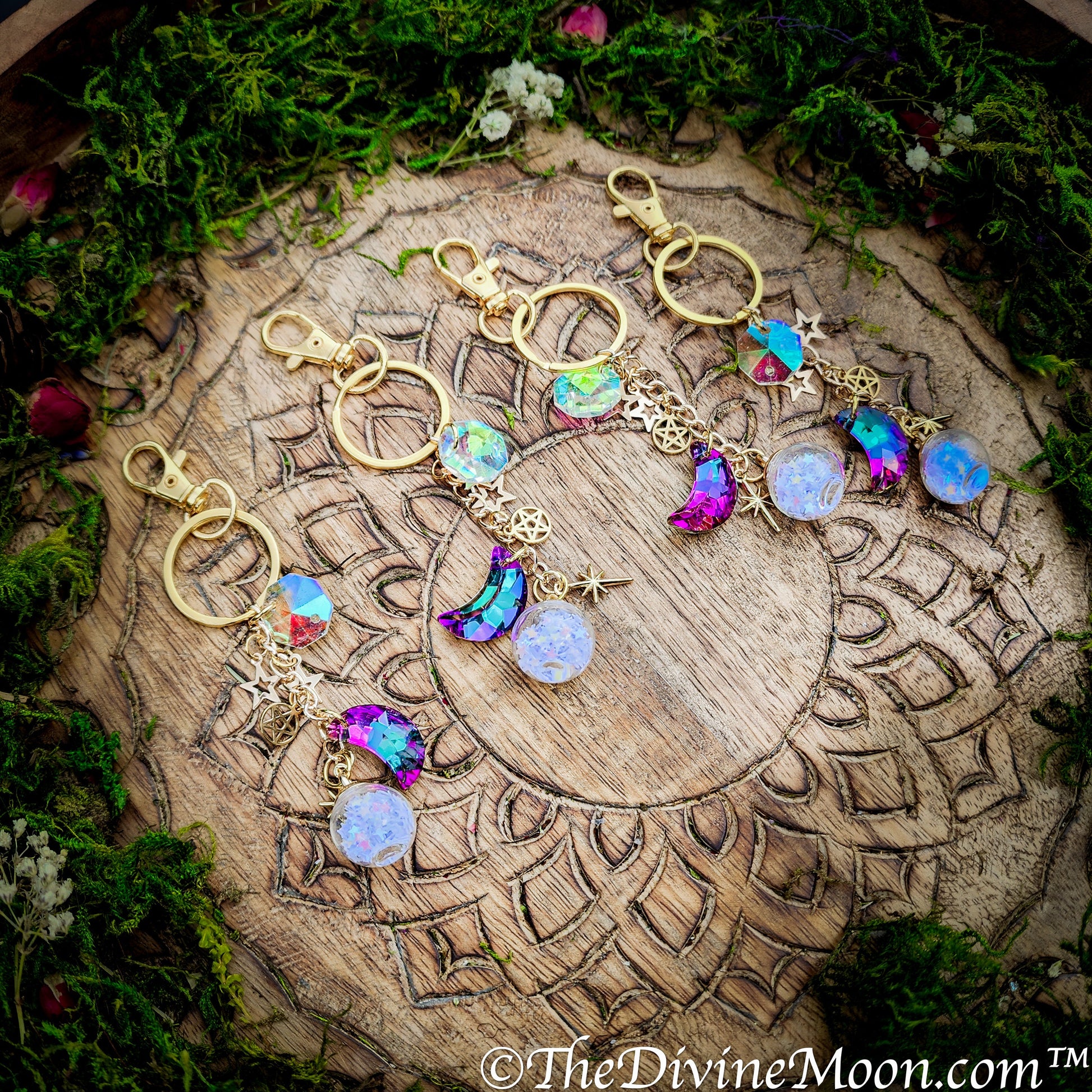 🔮 Witch Ball Keychain with Crystal Moon – Luck & Intention Charm by The Divine Moon™