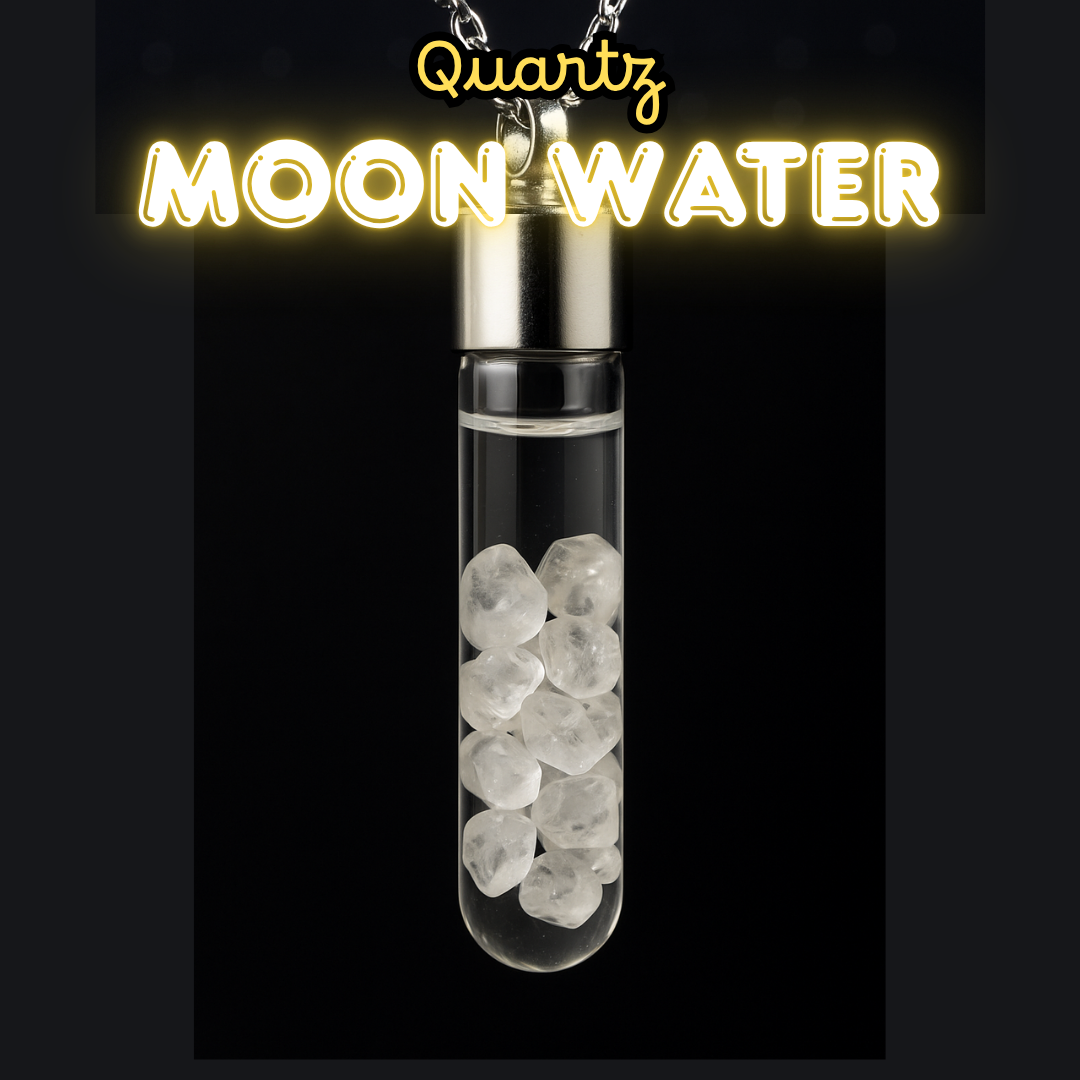 Filled with purified moon water and radiant Clear Quartz, this necklace is made for clarity, manifestation, and energetic amplification. Quartz magnifies your intentions, making it the perfect daily wearable for goal-setting and focus.
