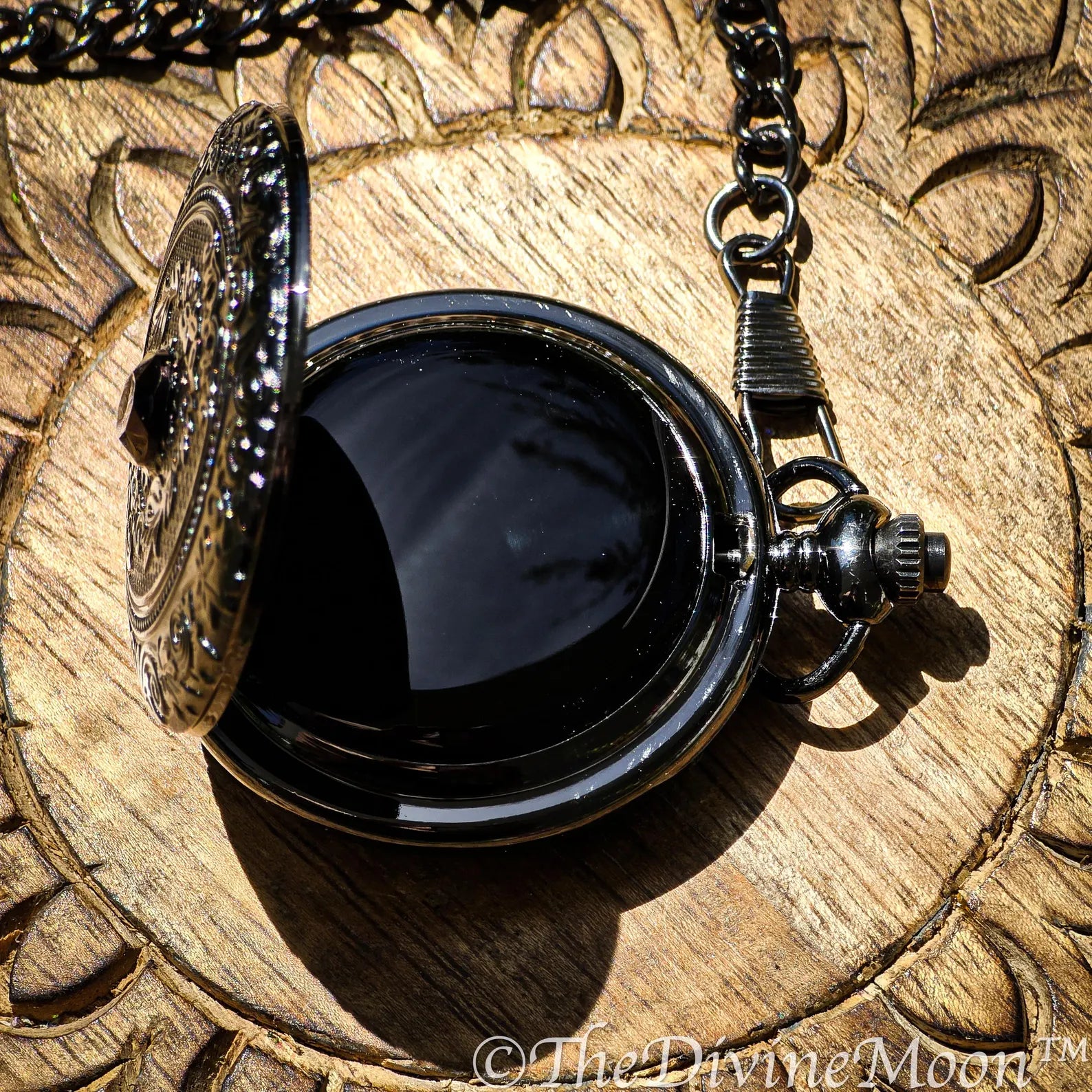Seer’s Veil Black Scrying Mirror Pocket Watch