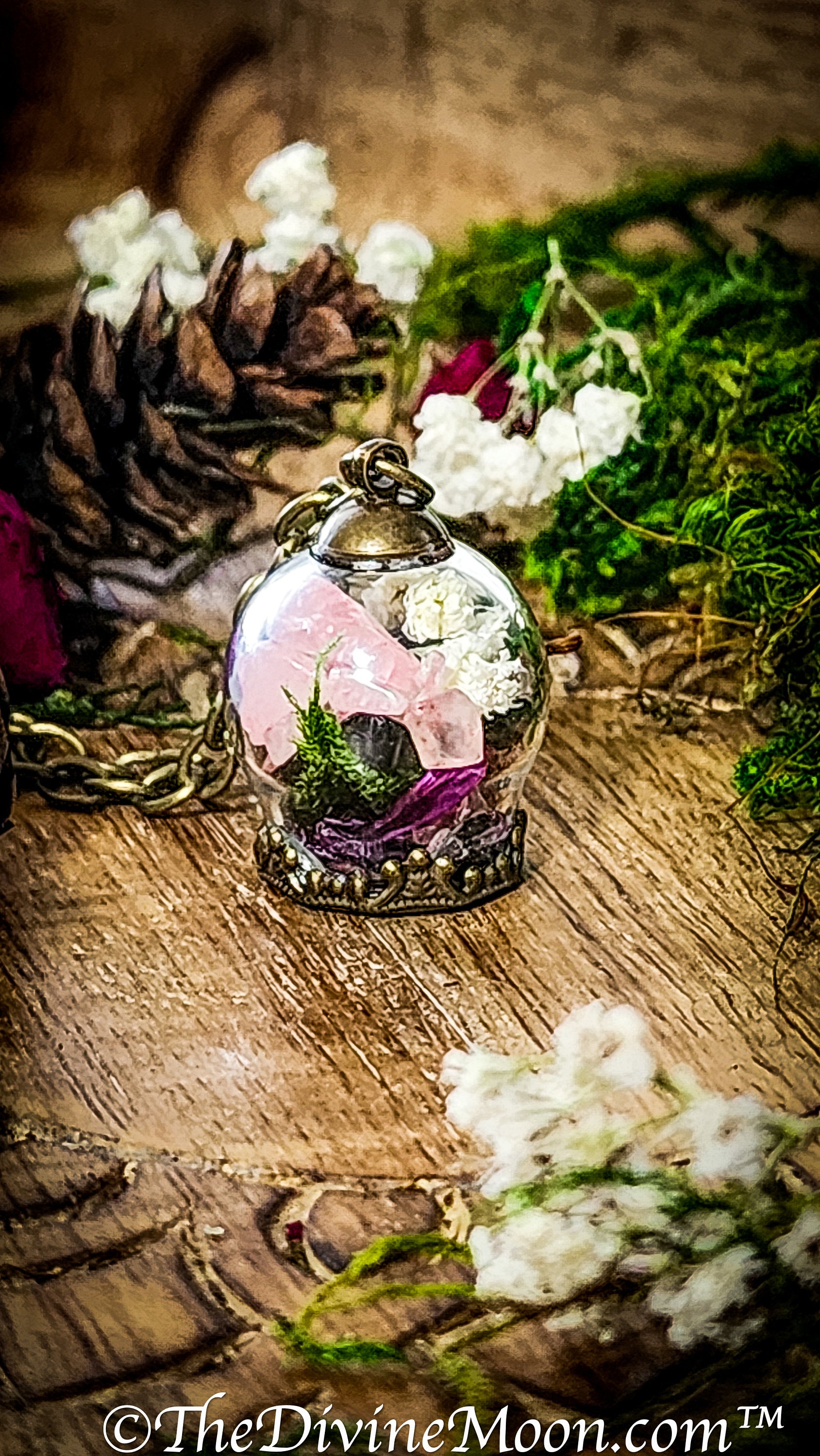 💗 Rose Quartz Witch Ball Necklace – Love & Wisdom Glass Pendant by The Divine Moon™ Carry the essence of intention and enchantment with this handcrafted Witch Ball Necklace, a wearable charm filled with crystals and botanicals traditionally associated with love, clarity, and spiritual balance.