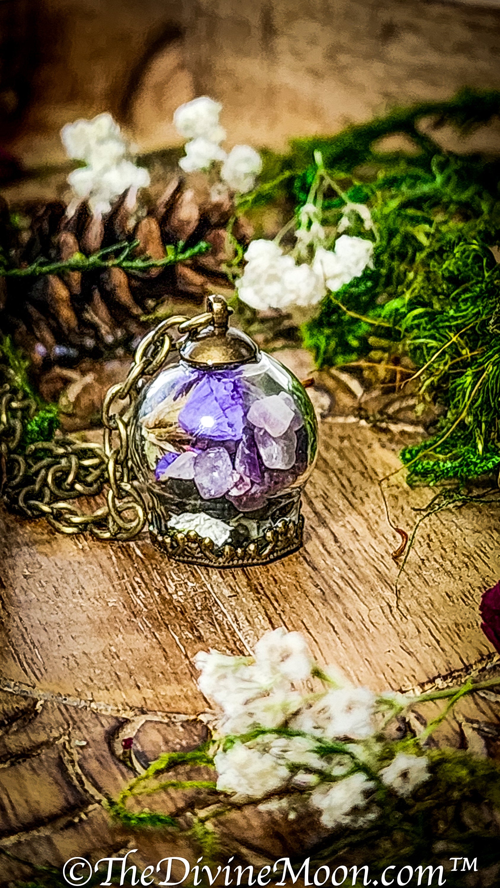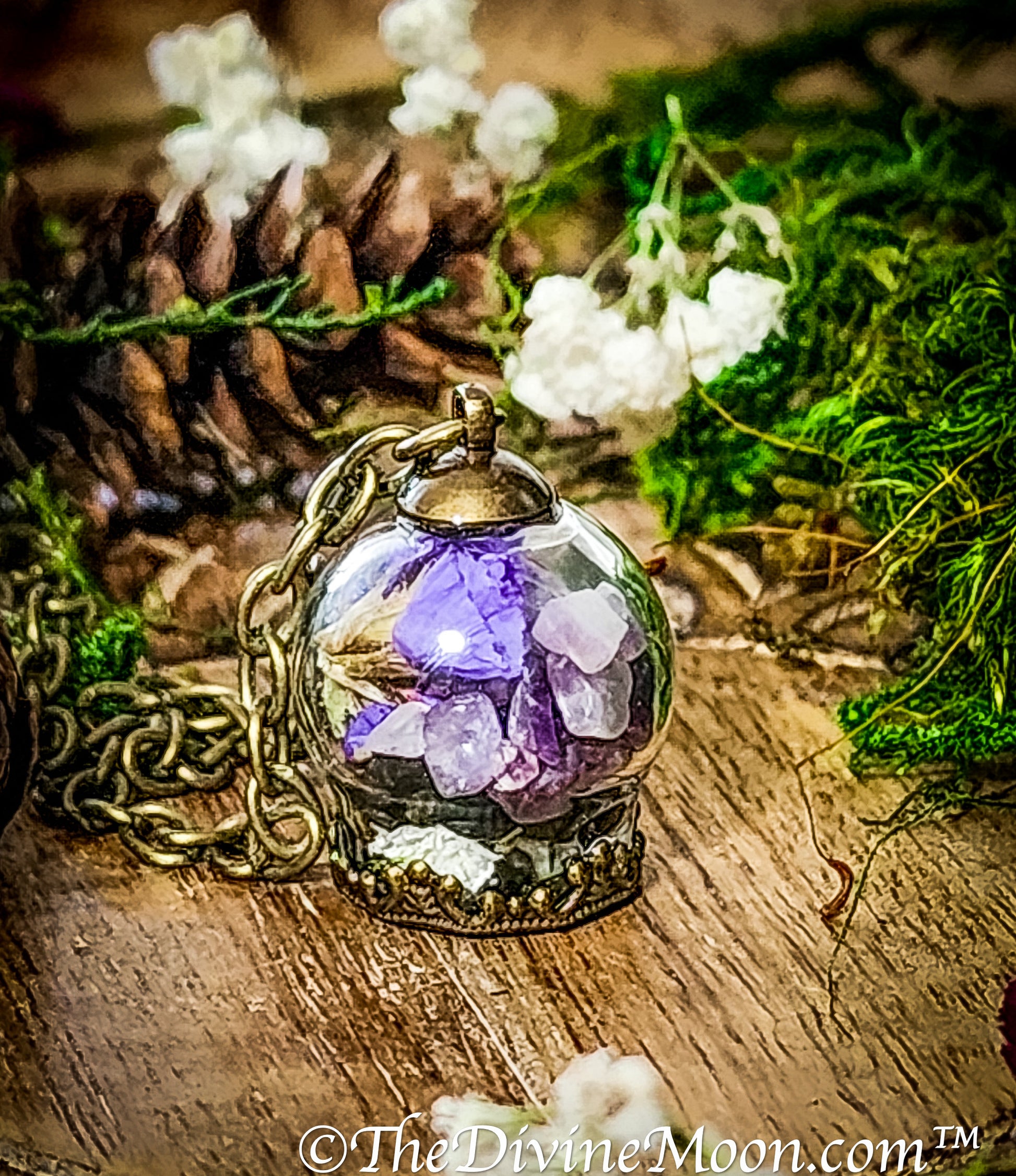 💜 Witch Ball Pendant Necklace – Amethyst & Obsidian Glass Talisman by The Divine Moon™
